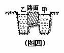 18、如图(四)所示,公路两侧的甲、乙两条水渠由路面下的倾斜涵洞相连,两渠水面相平,下列说法正确的是