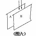 22、如图(六)所示,将A、B两纸片的上端提起,让纸片自由下垂,当向纸片中间用力吹气时,会发生的现象是