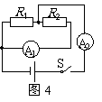 如图21-4所示电路中,电源电压不变,R1=4Ω, R2=6Ω.闭合开关S后,电流表A1的读数是I1,A2的读数是I2,两电流表示数之比