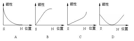 一根条形磁铁,左端为S极,右端为N极.下列表示磁体周围、从S极到N极磁性强弱变化情况的图像中正确的是( )