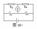 31、小王同学现有如下器材:一个电源(电压保持不变但数值未知),一个定值电阻R0,一个待测电阻Rx,一个电压表(最大量程大于电源电压),二个开关,导线若干,他用这些器材测Rx的阻值,方法如下: