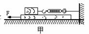 甲方案:如图17甲所示,将木板放在水平实验桌面上,用线通过弹簧测力计水平地拉住木块,沿木板方向水平拉木板,使木板在木块下面滑动。