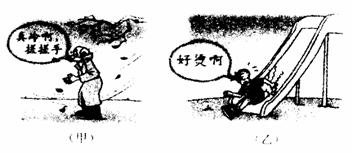 17.从物理学角度看,图示漫画中的两幅图都说明___________可以改变物体的内能.图(乙)中的小朋友从滑梯上滑下的过程中,他的重力势能将___________________.