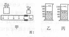 20、(6分)小明同学在配制盐水时,将托盘天平放在水平桌面上,将游码放在“0”刻度线处,发现指针在刻度盘中线的左侧,他应将平衡螺母向 调(填“左”或“右”)。天平调平后,其他操作都是正确的,称盐的质量时使用的砝码及游码的位置如图11甲所示,用量筒量出水的体积如图11乙所示,然后将盐倒入量筒中待盐完全溶解后,量筒中液面的位置如图11丙所示,由此可知盐的质量是 g,水的体积是 ㎝3,该盐水的密度是 ㎏/m3。