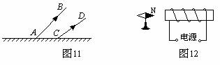 22.当通电螺线管通电时,小磁针指向如图12所示。请在图中标出通电螺线管的N