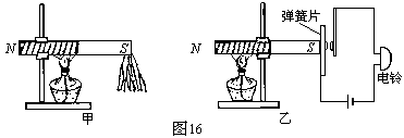 (2)根据这一结论,他设计制作了一个温度自动报警器,装置如图16乙所示。请简述它的工作原理。