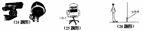 26.小明在某商场买鞋,他选一双新鞋在竖直的“试鞋镜”前试穿,如图所示,但在镜中他看不到自己穿着的新鞋的像。为了看到新鞋的像,则他应该