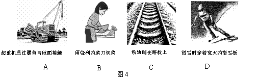 如图4中,采用减小受力面积的方法增大压强的事例是( )