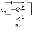 20.如图5所示,在探究并联电路中的电流关系时,小明同学用电流表测出A、B、