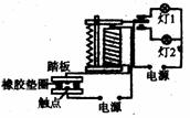26.(2005年四川自贡市)右图是一种防盗报警器,当有人踩踏板时报警器通过_亮来报警.(选填“灯1”或“灯2”)