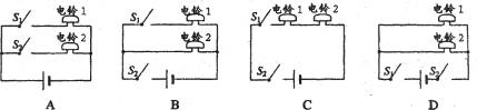 11.小明准备在前后门安装两只声音不同的电铃,希望能从铃声分辨出是前门来客还是后门来人,设计的电路图正确的是…………………… ( )