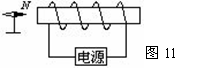 (2)电磁铁通电时,静止的小磁针指向如图11示,请在图中标出电磁铁的N极及电源的正极.