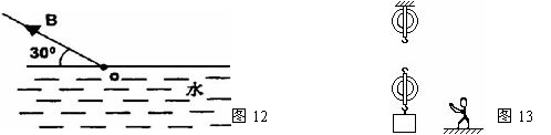 18.图12中的OB是一束光线由空气射到水面后的反射光线,请你在图中画出入射光线,在图中标出入射角的度数,并画出折射光线的大致方向.