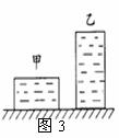 5.完全相同的甲、乙两个长方形容器,都装满水,如图3所示放置,则甲、乙两个容器底部受到水的压力F甲和F乙、压强P甲和P乙,它们的关系正确的是( )