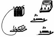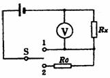 25、如图示S是一个单刀双掷开关。电源由3只蓄电池串联而成。S1接1时,电压表测_______;当S接2时R0与Rx__________联。