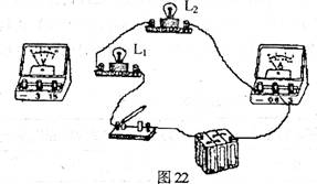 32.某同学探究串联电流和电压特点,实验电路如图22。