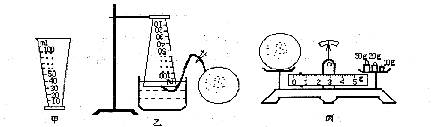 22.(4分)小明用如下实验测定所处环境的空气密度。他用气筒将皮球打足气,用天平称出此时皮球的质量为81.6g,将如图甲所示的量杯装满水后,倒放在水槽中,用气针和乳胶管将皮球中的空气引入量杯内,用排水集气的方法慢慢排出皮球中的气体,如图乙所示,同时调整量杯的高度,使量杯内气体达到量杯的最大测量值,且量杯内、外水面相平。此时,用夹子夹紧乳胶管暂停放气。再将量杯装满水后重新集气,如此进行10次。拔出气针,用天平称出此时皮球和剩余气体的质量,如图丙所示。请根据实验及图中所示情况,帮助小明完成下面的实验表格。