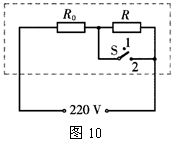 7.CFXB型“220V 1100W”电饭煲的原理图如图10所示,它有高温烧煮和焖饭、保温两挡,通过单刀双掷开关S进行调节,R0为电热丝.当开关S接高温烧煮挡时,电路的功率为1100W,当开关S接焖饭、保温挡时,电路的总功率为22W.