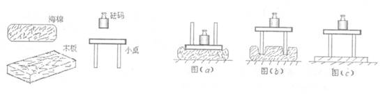 17、在探究“压力的作用效果与哪些因素有关”的实验中,小明和小华利用所提供的器材(小桌、海棉、砝码、小板)设计了图(a)、(b)两个实验,通过观察图(a)、(b)后得出“压力一定时,受力面积越小,压力的作用效果越明显”的结论。此后小华把小桌挪放到一块木板上,发现小桌对水板的压力效果不够明显,如图(c)所示,通过对图(a)、(c)的比较又得出“压力一定时,受力面积越小,压力的作用效果越不明显”的结论.