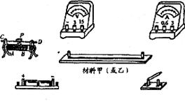 18.(7分)为了探究甲、乙两种材料的导电能力,物理兴趣小组的同学选取长度和横截面积均相同的两种材料,利用下图所示的器材,分别测出了它们在不同电压下的电流值,记录的数据如表所示。 实验数据记录表