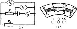 4.在如图(a)所示电路中,当闭合开关后,两个电压表指针偏转均如图(b)所示,则电阻