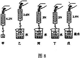 24.图8是小亮同学为探究“影响浮力大小的因素”所做的一系列实验
