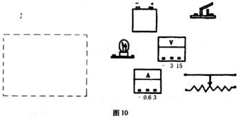 ①请在图10所示虚线框内画出该同学测量时的电路图,并进行实物连接。