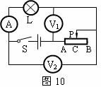 17.如图10所示电路电源电压一定。闭合开关S,滑动变阻器的滑片P在中点C时,灯L正常发光。如果继续移动滑动变阻器的滑片P,可能出现的情况是