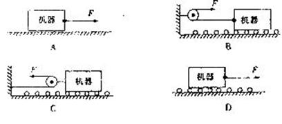 14.工厂要搬运-个笨重的机器进车间,四名工人分别设计了如图所示的四种方案(机器下方的小圆圈表示并排放置的圆型钢管的截面),如果你是该负责人你会选的是哪种方案