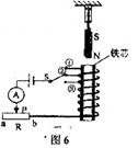 8、如图6所示实验装置,弹簧测力计下面挂着条形磁铁,螺线管中插有铁芯,开关S拨在触点②位置。要使弹簧测力计的示数变大,下列操作方法能够实现的是
