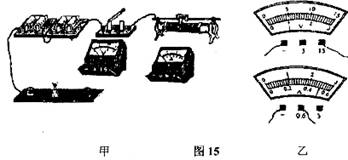(1)用笔画线代替导线,将图15甲中的电流表和电压表接入实验电路中;
