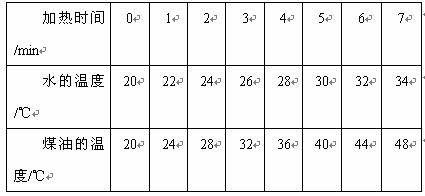 40.在比较水和煤油比热容大小的实验中,小明取了两只相同的烧杯,且在烧杯里分别装入质量和初温都相同的水和煤油.他用两个完全相同的“热得快”给它们加热,并记录得到了下表中的实验数据,请你回答下列问题: