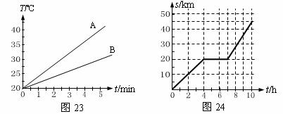 ⑷图23是小明跟据实验数据画出的图线,其中________表示的是水吸热升温情况.