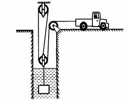 41. 如图22所示,小型牵引车通过滑轮组匀速打捞起深井中的物体,在被打捞的物体没有露出水面之前,牵引车以2m/s的速度匀速行驶,对绳的拉力为F1,F1的功率为P1;当被打捞的物体完全露出水面后,牵引车以6m/s的速度匀速行驶,对绳的拉力为F2,F2的功率为P2。已知物体重为