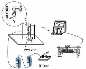 (2)如图16所示的实验电路,可以探究电磁铁的磁性强弱与 的关系 。