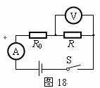 34.小莉同学按图18所示的电路探究“导体中的电流跟导体电阻的关系”。她不断改变电阻R的阻值,并将电阻值以及对应的电流表的示数记录在表1中。分析表1中的数据可知:电路中的电流I跟电阻R不是反比关系,这一结论与欧姆定律不一致。请你帮助小莉分析:
