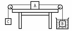 14.如图8,实心铝块,(ρ铝=2.7g/cm3) B、C 的 体积均为10cm3,当B浸没在水中时,木块A恰能在水平桌面上向左匀速运动。若用铝块D替换C ,使A在桌面上向右匀速运动,则D的质量 应为:(铝块B始终在水中,水与B之间的摩擦及滑轮处的摩擦均忽略不计)