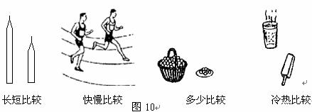 16.人们要认识事物,就要对事物进行比较,就要引入相应的物理量。要完成图10中几幅图给出的比较,所引入的物理量正确的是
