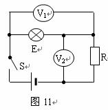 17.如图11所示电路中,灯泡E上标有“6V 9W”字样,闭合开关S后,灯泡正常发光,电压表V1的示数为U1,电压表V2的示数为U2,若U1:U2=2:3,则