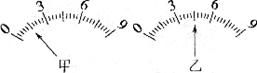 7.在实验室,小明同学发现一个电流表有两个量程,大量程是0-9A,小量程模糊不清。为了测量小量程是多少,她先用大量程接入电路,指针位置如图甲所示,然后再改用小量程接人同一电路,指针指示如图乙所示,则电流表的小量程为( )
