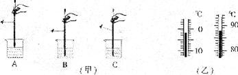 16.(6分)使用温度计时,首先要观察它的 和认清它的分度值。小明用温度计测量烧杯中液体的温度,分别进行了三次操作,如图(甲)所示,其中正确的操作是 。图(乙)中所示的是用温度计分别测得的冰和水的温度,那么冰的温度是 ℃,水的温度是 ℃。