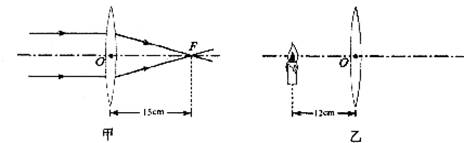 7.一束平行光线经过凸透镜折射后的传播方向如图甲所示,由图可知,此透镜的焦距为 cm;当把烛焰放在此凸透镜左侧12cm处时,如图乙所示,则从该凸透镜右侧通过透镜可以看到一个 、放大的虚像(填:“正立”或“倒立”)。