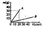 7、下图所示的是A、B两种物质的质量m与体积V的关系图像,由图像可知,A、B两种物质的密度