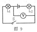 4.如图9所示,灯L1和L2是________联的,电压表测的是________两端的电压;若电源电压是8V,电压表示数是3V,则灯L1两端的电压是________V,L2两端的电压是________V。