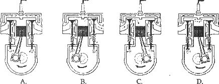 5、汽油机是由四个冲程不断循环而工作的,下图中表示内能转化为机械能的冲程是