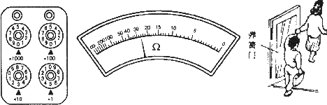 。下中图所示是一电表的表盘,也许你没有学过这种电表的用法,但根据所学的其它电表的读数方法,你也能知道,它的示数 是________。