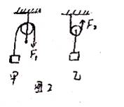 17、同学们帮峰峰的爸爸将一重为l000N的建筑材料匀速运送到36m高的楼上,每位学生站在地面上可产生的平均拉力为300N,而站在楼上时为了安全起见可产生的平均拉力为150N。善于学以致用的峰峰买来了一个重为100N的滑轮和一根足够长的绳子,同学们有的建议采用下图中的甲方案,有的则建议采用方案乙(不计绳重和摩擦)。