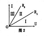 9.有两个阻值不同的定值电阻R1,R2,它们的电流随电压变化的I-U,图线如图2所示。如果R1,R2串联后的总电阻为