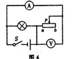 13.如图4所示,电源电压和灯泡电阻都保持不变。当滑动变阻器的滑片P由中点向右移动时,下列判断不正确的是