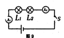 18.如图9是小宇同学探究“串联电路中各处电流关系”的电路图,他连接好电路并检查无误后,合上开关S,发现电流表A1的示数比电流表A2的示数大一些,于是他得出结论:串联电路中各处电流不相等。